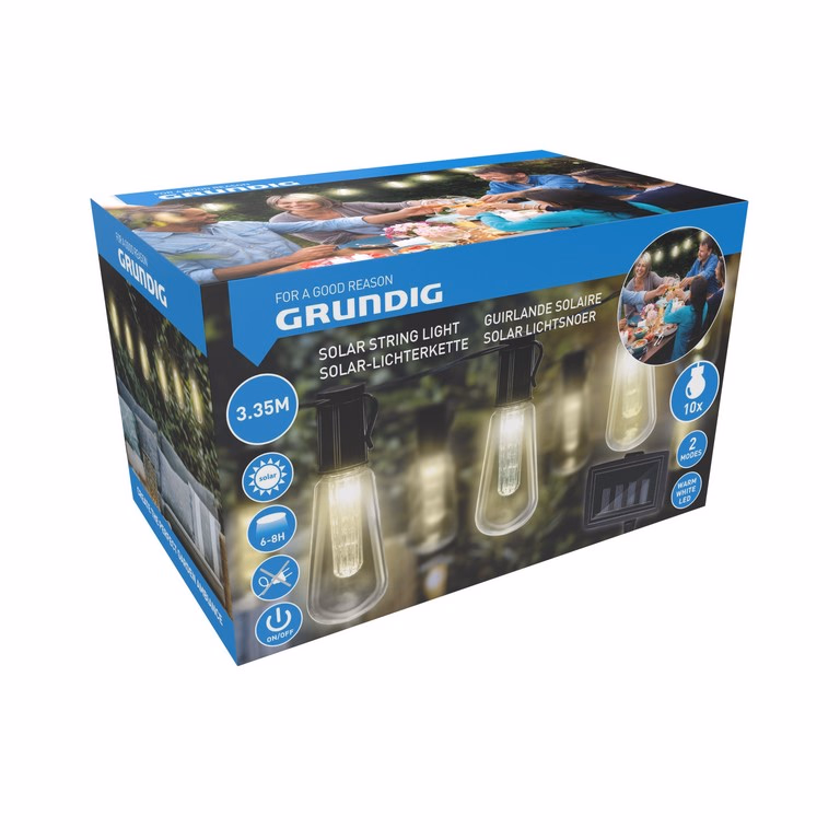 Gallery showing 1 images of GRUNDIG LED füzér SOLAR 10db fény fehér 335cm 1.2V Ni-MH 600mAh