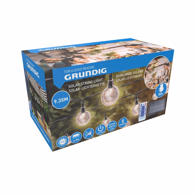 GRUNDIG SOLAR LED 50db füzér meleg fehér fény 755cm 3.7V 1200mAh