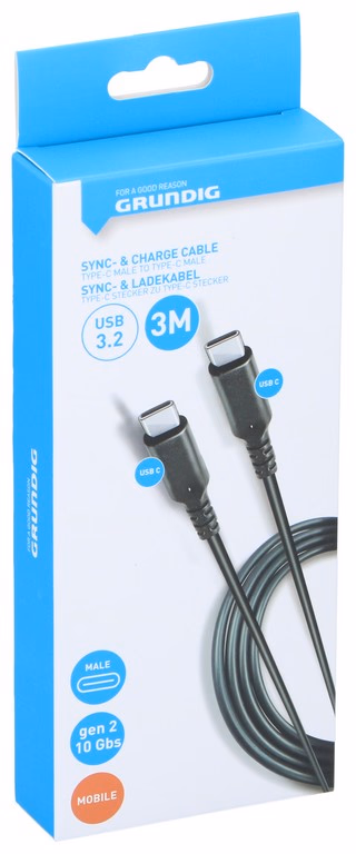 GRUNDIG Type-C-C 3.2 Töltő- és adatkábel, 10Gbps, 3m, fekete