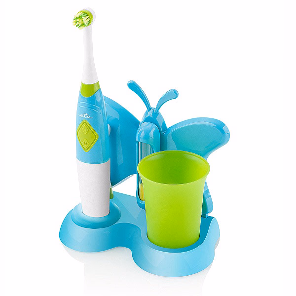 Gyerek fogkefe ETA Zubnička - fiús ETA Zubnička gyerekfogkefével öröm és gyerekjáték a gyerekfogak tisztítása. Gyerek dizájn, matricák, forgófej, praktikus állvány pohárral és homokórával.