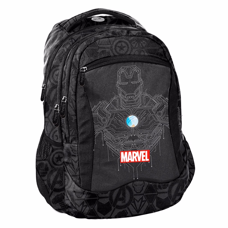 Fekete hátizsák, melynek hátterébe olvadnak az Avengers emblémák, míg az elején büszkén megjelenik Vasember karaktere.