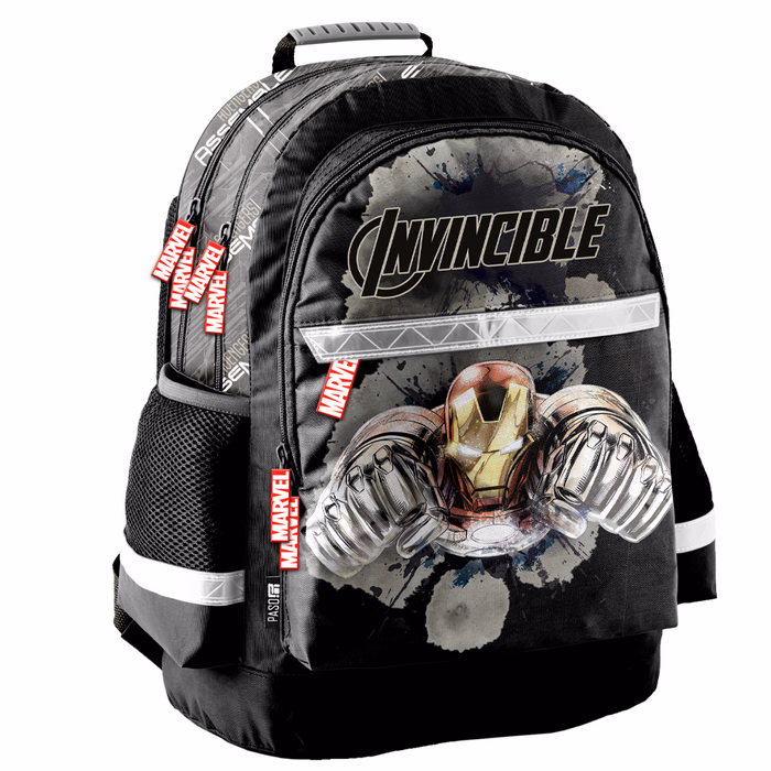 A bosszúállók egyik szuperhőse, Vasember díszíti a hátiszákot.