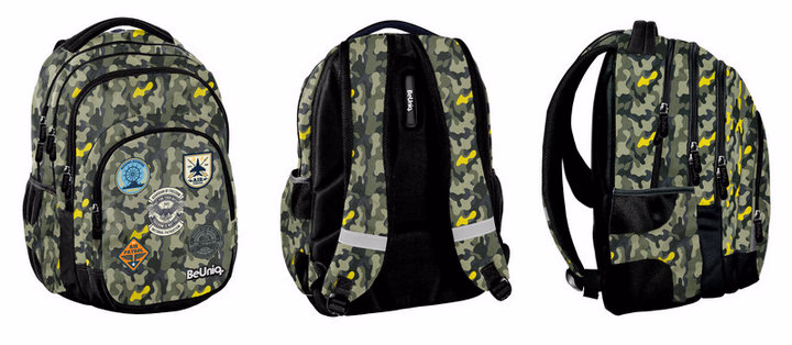 Backpack, three compartments, one front pocket, two side mesh pockets, internal organizer, regulated shoulder straps, reflective elements, very stiff back covered with EVA foam, padded bottom, media pocket with headphone port, water repellent fabric