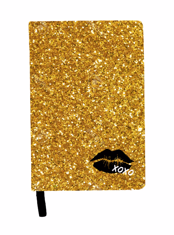 Aranyszínű csillámos jegyzetfüzet elegáns és csillogó, mérete 14,8x21cm.