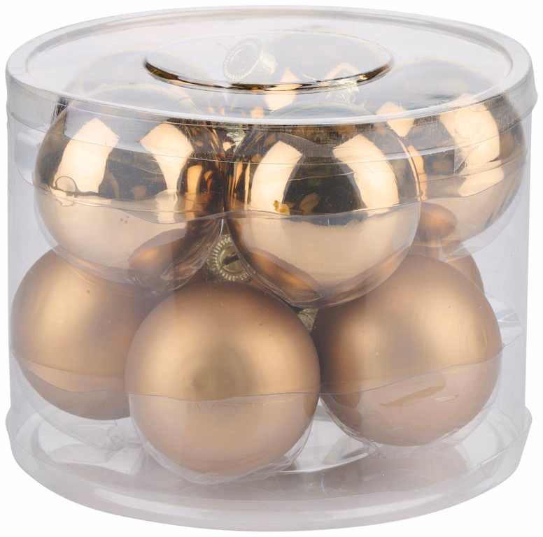 Karácsonyfadísz üveg gömb 10db, 6cm, arany, matt/fényes