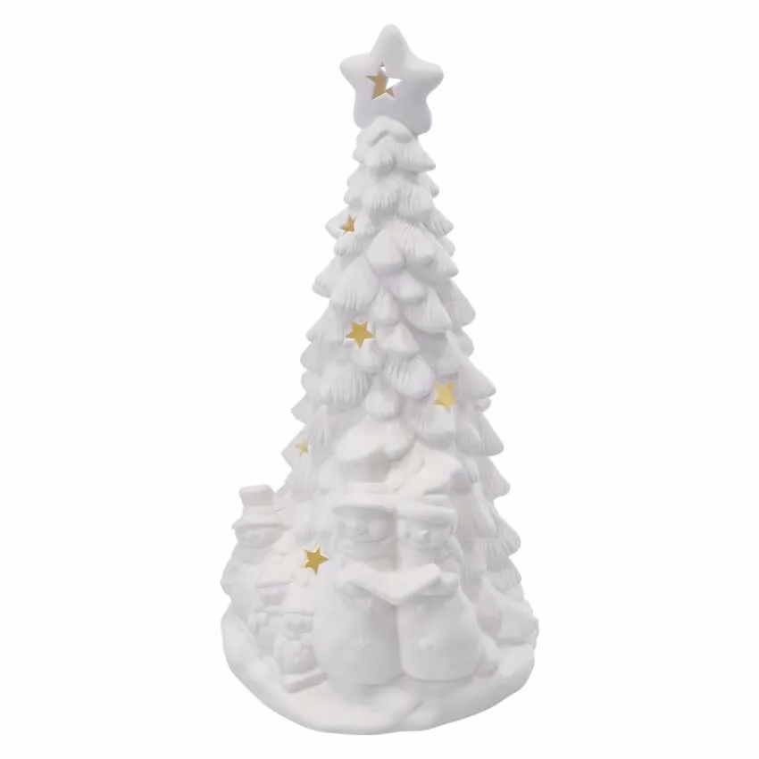 Kerámia LED-es fa hóemberekkel, 33,5 cm, 2x AA, meleg fehér, időzítő