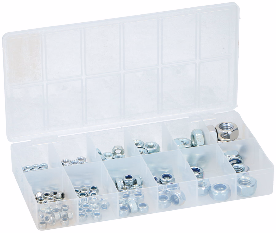 A csomagban a következő nagyságú anyák vannak: M4, M5, M6, M8, M10, M12.