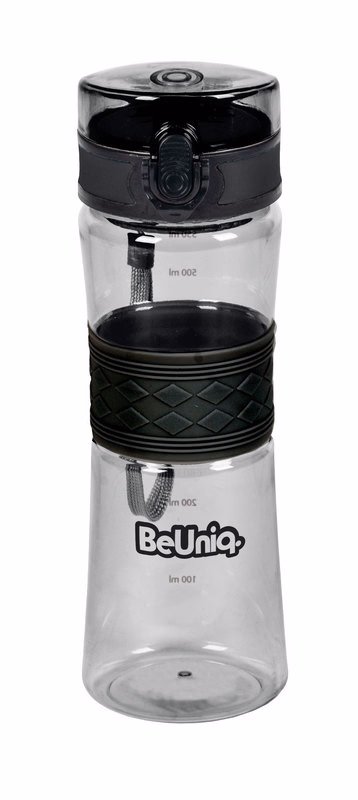 TRITAN Water bottle, capacity 550 ml, ergonomic shape, strainer placed in the neck of the bottle, without Bisphenol A, measure in ml, anti leak blocade, handle for easy carrying, silicone band to make it easy to hold in hand, packing opp bag+sticker