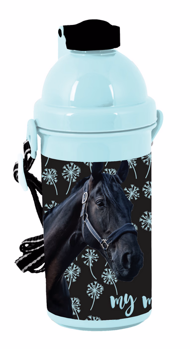 Plastic bottle 500 ml with adjustable strap, for max beverages' temperature 60ºC. Non toxic, safe for children BPA FREE
