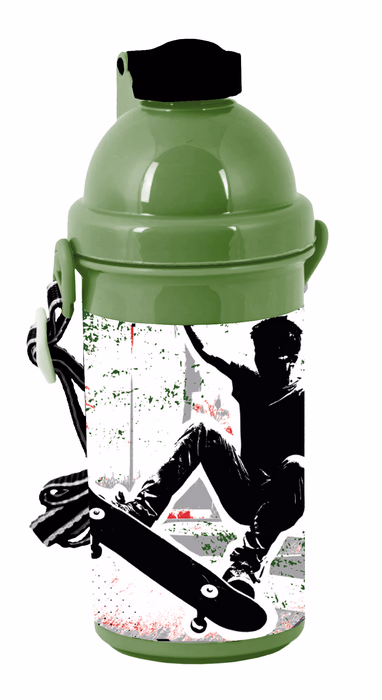 Plastic bottle 500 ml with adjustable strap, for max beverages' temperature 60ºC. Non toxic, safe for children BPA FREE