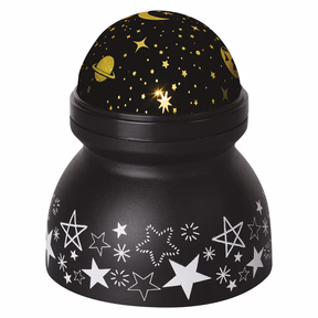 termék: projektor, technológia: LED, fény színe: meleg fehér, időzítő: nem, távvezérlő: nem, minta: csillagok, funkció: forgó fény, használat: beltéri, tápellátás típusa: elem (3× AAA)/USB, fogyasztás: 2 W, kimeneti feszültség: 4,5 V DC, védettség: IP20, élettartam: 10 000 óra, anyag: műanyag, garancia-időszak: 2 év, értékesítési csomagolás: 1 db, doboz