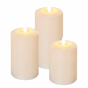 termék: gyertya, fény színe: vintage, méretek: 7,5 × 10/12,5/15 cm, használat: beltéri, időzítő, távvezérlő: nem, tápellátás típusa: elem (9× AAA), fényforrás: LED, LED-ek száma: 3× 1, fogyasztás: 3× 0,06 W, kimeneti feszültség: 3× 4,5 V DC, védettség: IP20, élettartam: 10 000 óra, anyag: viasz, garancia-időszak: 2 év, értékesítési csomagolás: 1 db, doboz