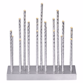 LED gyertyatartó, ezüst, 28,5 cm, 3x AA, beltéri, meleg fehér, időzítő