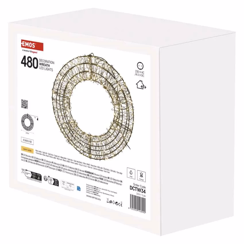 LED karácsonyi koszorú, 480 LED, külső és belső, meleg fehér
