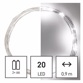 LED karácsonyi nano fényfüzér, 1,9 m, 2x AA, beltéri, hideg fehér, időzítő