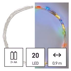 LED karácsonyi nano fényfüzér, 1,9 m, 2x AA, beltéri, többszínű, időzítő