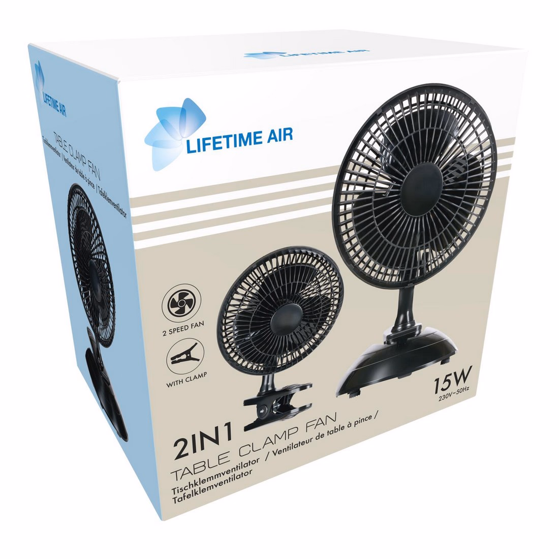 LIFETIME AIR Ventilátor asztali 3 sebességes 230V 15cm 15W; 19x19x235cm 673g