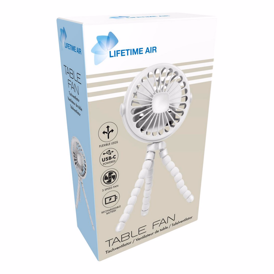 LIFETIME AIR Ventilátor asztali 3 sebességes USB 500mAh, 10x4.5x23cm 96g
