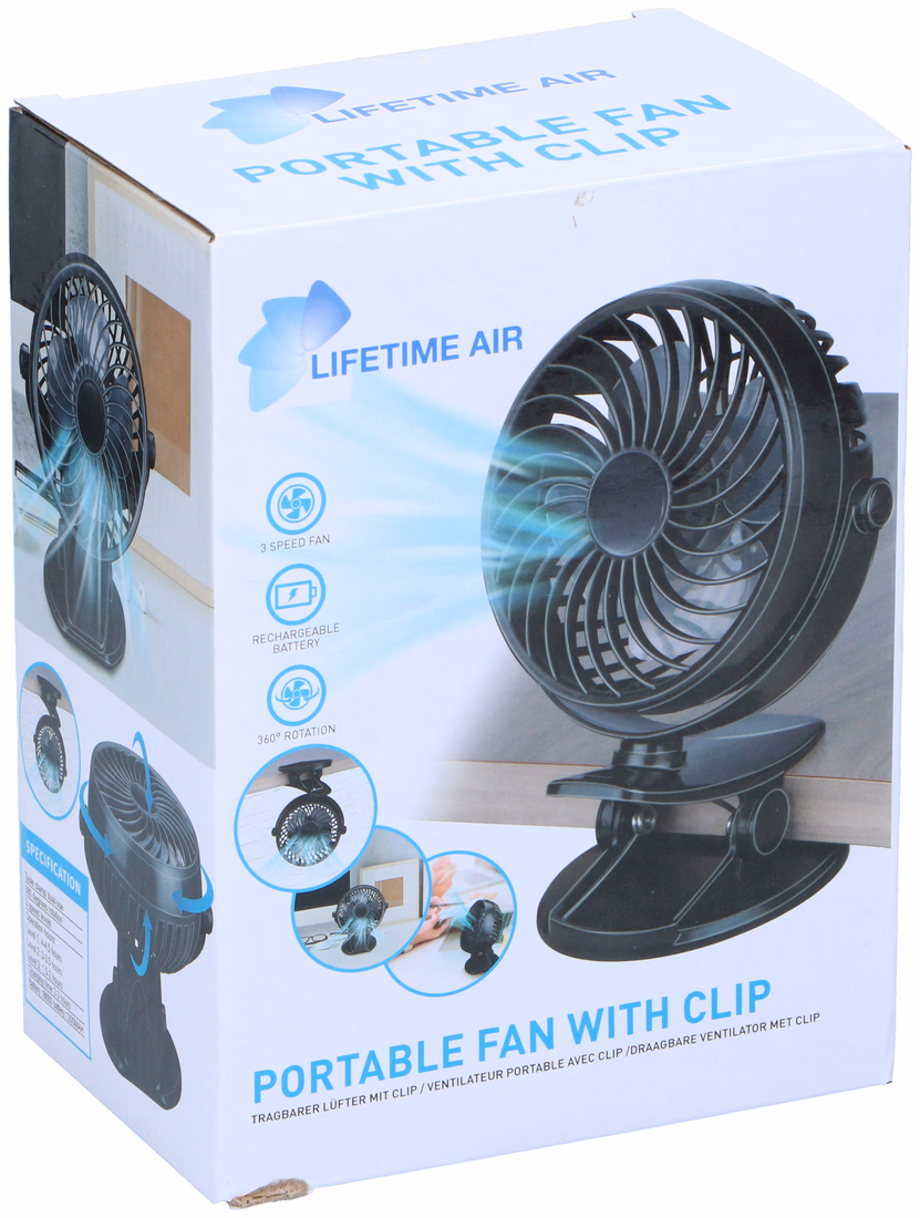 LIFETIME AIR - Ventilátor csiptethető 1200mAh Air 18x16x10cm 292gr PS CB újratölthető elemmel