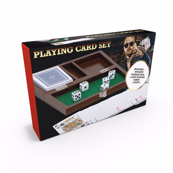 LIFETIME GAMES Kártya + dobókocka szett fa dobozban 18x11x3cm