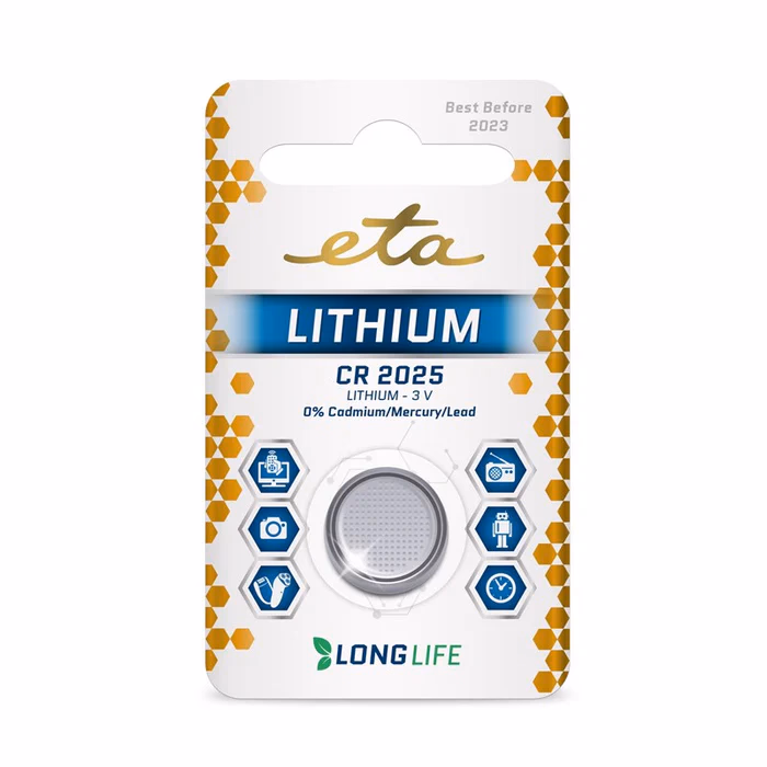 •Méret: CR2025 •Feszültség: 3 V •Buborékcsomagolásban:1 db •Modellsorozat ETA Lithium