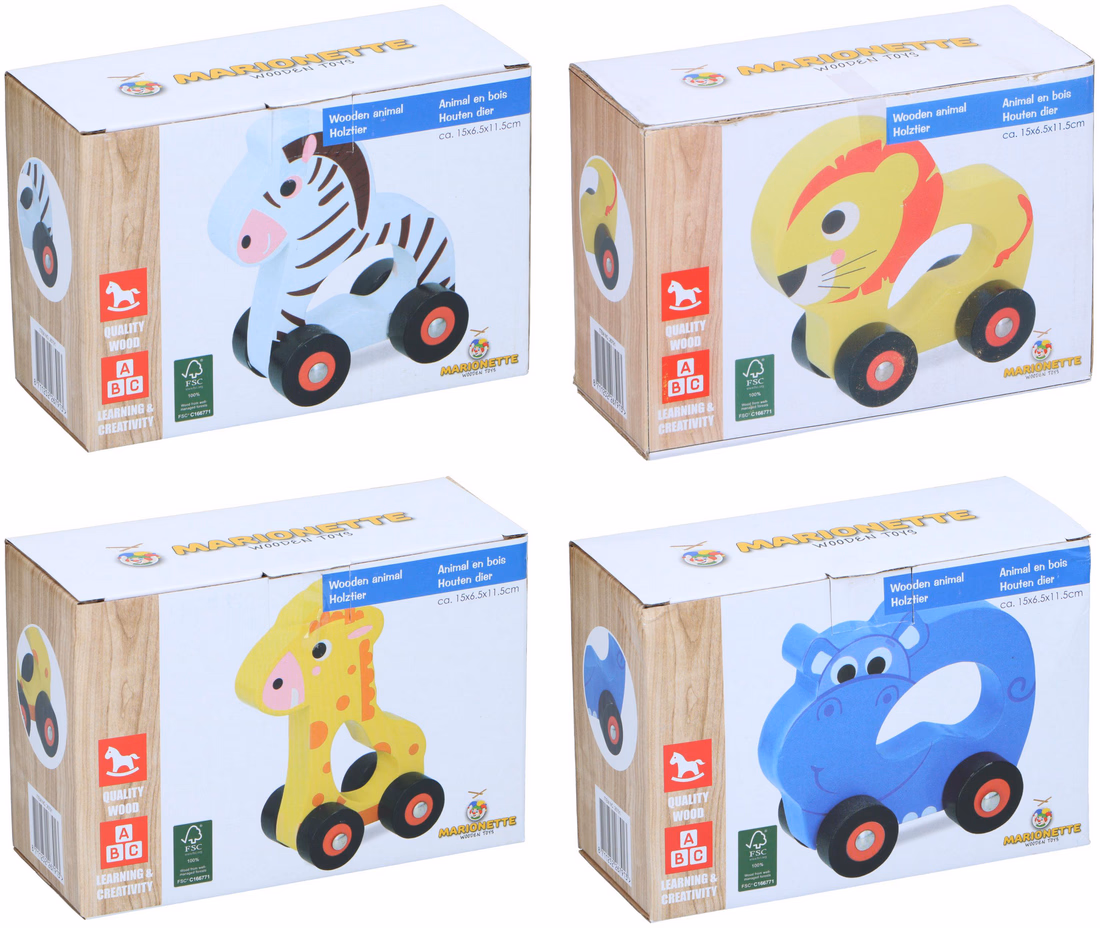 MARIONETTE WOODEN TOYS Fa baba gurulós állatok 4 féle