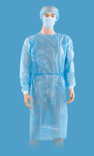 Mercator spunbond típusú finom nem szőtt textil anyagból készült köpeny, szalagos, gumis mandzsettával.