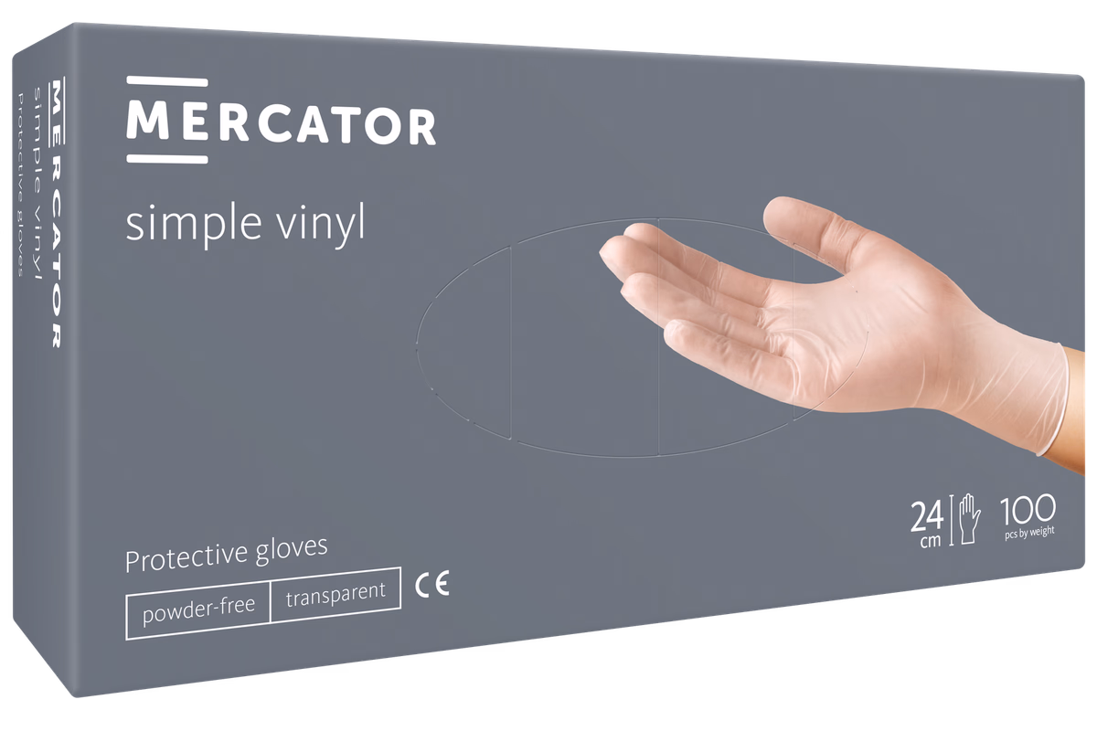 MERCATOR® Vinil, latexmentes, púdermentes áttetsző védőkesztyű professzionális felhasználásra. 100 db, XL méret