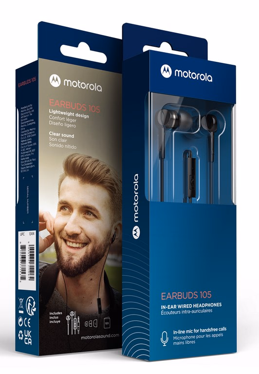MOTOROLA Fülhallgató EARBUDS 105 Fekete 1x2x125cm 51gr sztereó + mikrofon