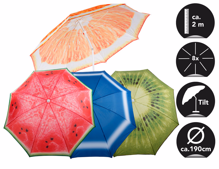 Napernyő 2m 4 féle gyümölcs nyomattal, 2,05m magas 8 pálcás