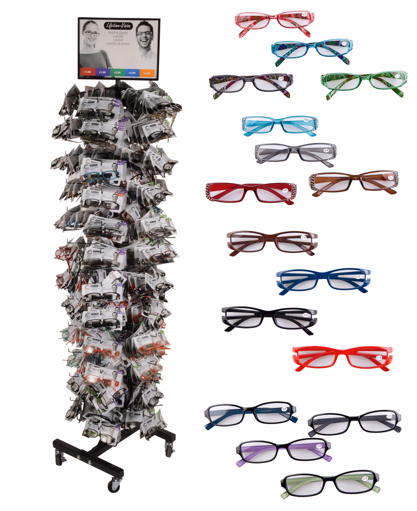 Olvasószemüveg 6 féle design, 4 szín, műanyag disp(480db)