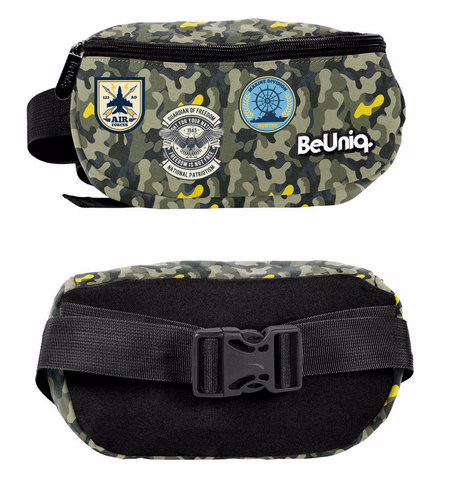 Waistbag, one spacious pocket, strap adjustable on both sides,rubber logo on front, water repellent fabric