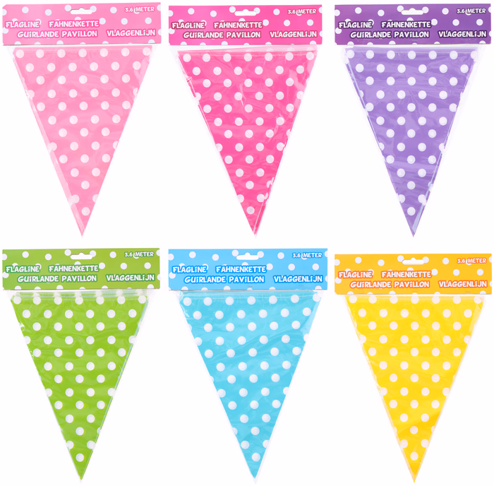 PARTY CASA Banner zászló 10db 3,6m PÖTTYÖS 6 színben