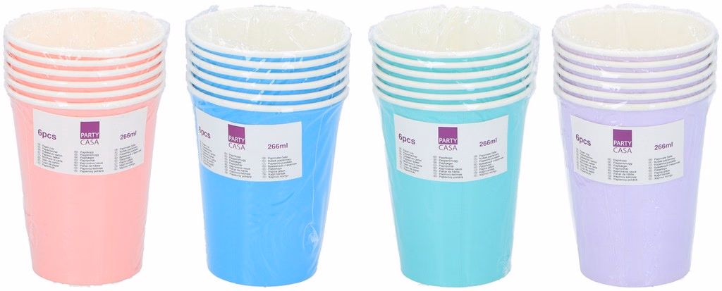 PARTY CASA Party pohár papír pasztell 266ml 6db 6 féle szín
