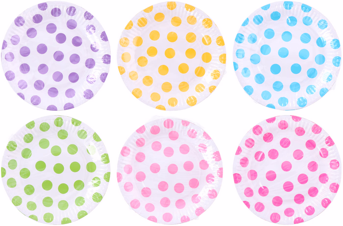 PARTY CASA Tányér 18cm papír 6db 6 féle PÖTTYÖS