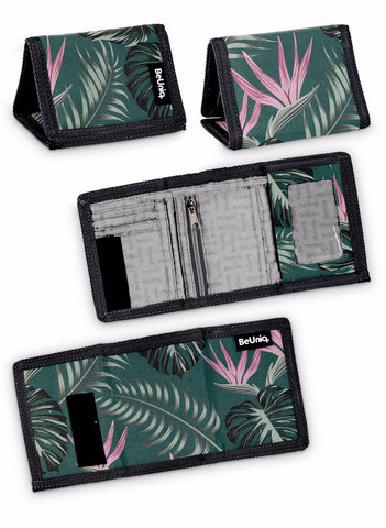 Wallet, closed with velcro, 7 compartments (among others 1 transparent, 1 with a zipper)