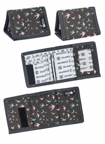 Wallet, closed with velcro, 7 compartments (among others 1 transparent, 1 with a zipper)