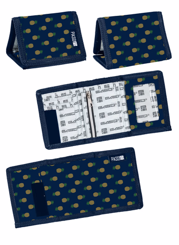 Wallet, closed with velcro, 7 compartments (among others 1 transparent, 1 with a zipper)