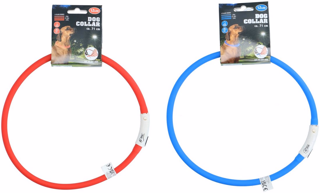 PET COMFORT Kutya nyakörv világító 12 ledes 2 féle, méretre vágható 15 x 15 x 235 mm