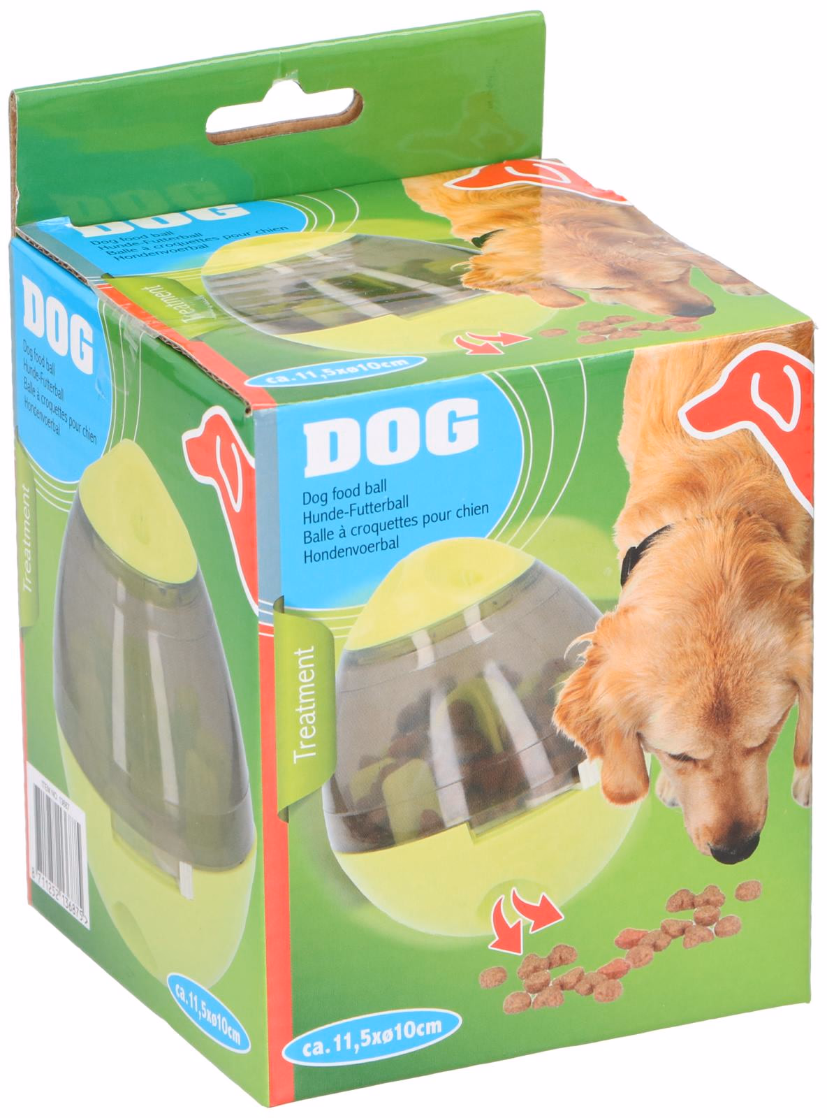 A Pet Treatment snack labda 11,5 cm magas és 10 cm átmérőjű. Emiatt a labda kiválóan alkalmas kistestű kutyák vagy macskák számára, de jobb, ha nem adja oda nagyobb kutyának.