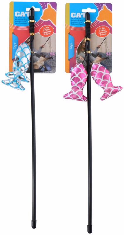 PET TOYS Macska játék pálcás 47 cm 2x hal, 2 változatban