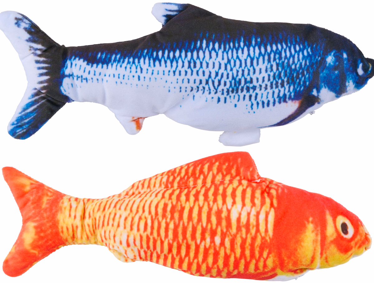 Gallery showing 2 images of PET TOYS Macskajáték plüss csapkodó hal, mentával, USB tölthető 27x11x5cm 95g