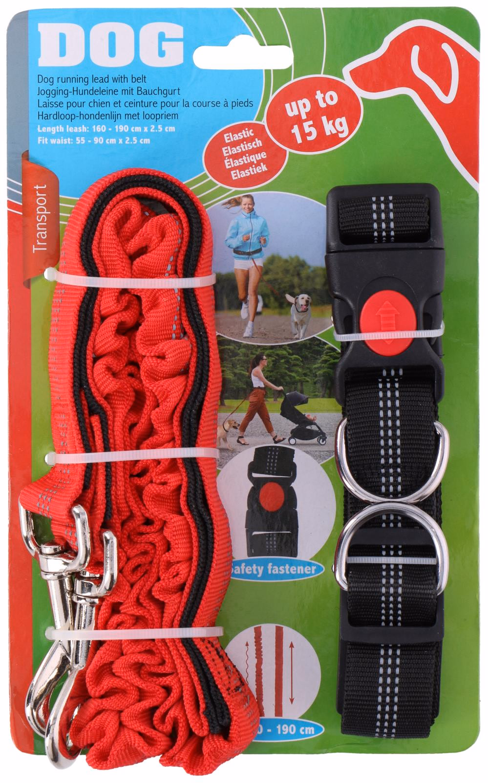 A póráz hossza kb. 1,60 m-től 1,90 m-ig megnyújtható, és így csillapítja a hirtelen mozgásokat.