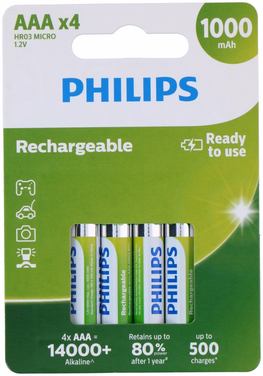 Gallery showing 1 images of PHILIPS Elem AAA 4db RTU NiMH 1000mAh újratölthető elem R03B4RTU/10