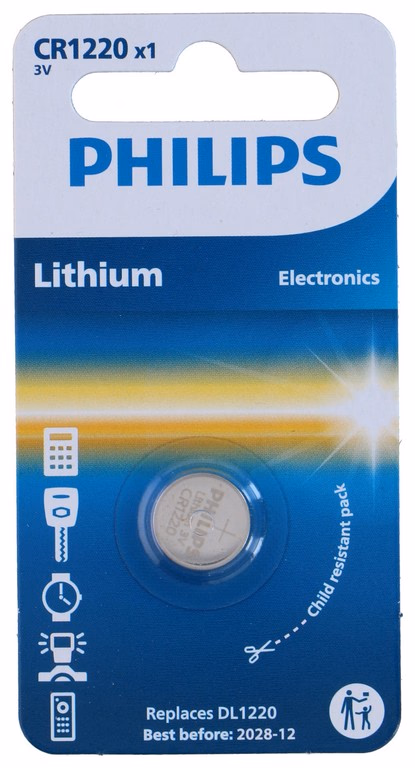 Gallery showing 1 images of PHILIPS Gombelem (1db) CR1220/00B lítium 3.0V 12x2cm