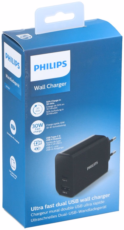 PHILIPS Hálózati töltő adapter Type-C / USB-A, fekete