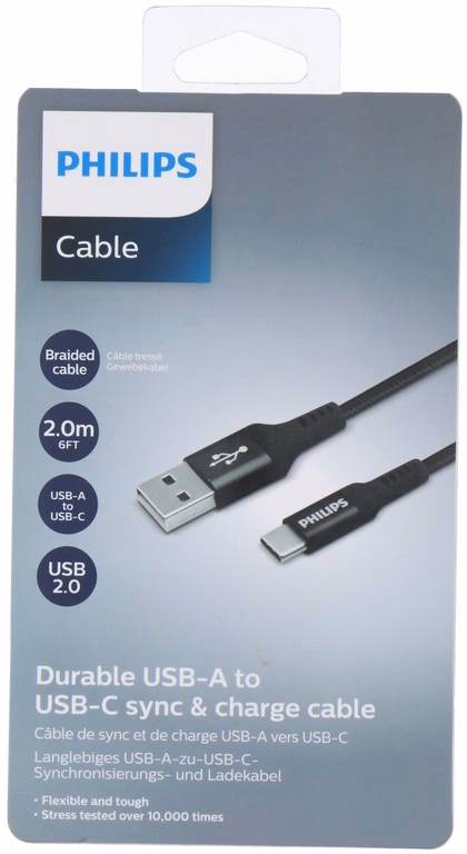 Gallery showing 2 images of PHILIPS Type-C / USB-A Töltő- és adatkábel 2m, fonott - fekete