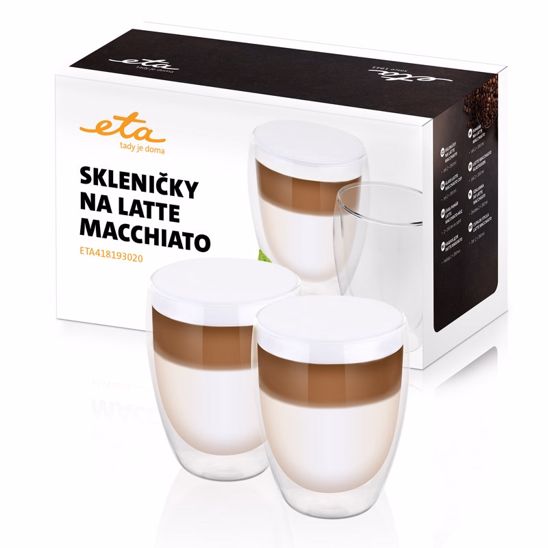 Pohár latte macchiato, 350 ml, 2db, ETA Elegáns dupla falú, boroszilikált üvegből készült poharak a még intenzívebb kávé élvezetéért. 350 ml.