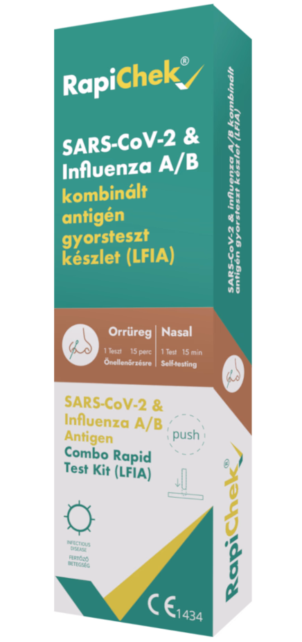 Rapicheck Covid antigén + Influenza A-B kombó önellenőrzésre alkalmas gyorsteszt. CE1434