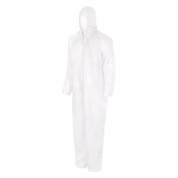 RockSafety PP 40g kapucnis védőoverál, egyszer használatos, fehér, L méret